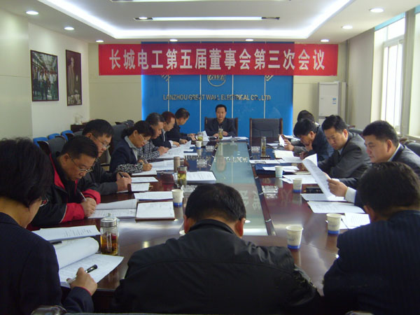 2012年10月25上午,由長城電工董事長楊林主持,蘭州長城電工股份有限公司召開第五屆董事會(huì)第三次會(huì)議。會(huì)議審議并通過了《長城電工2012年三季度報(bào)告》、《公司關(guān)于建立<內(nèi)部控制手冊(cè)>及相關(guān)管理制度的議案》、《公司關(guān)于建立<內(nèi)部控制評(píng)價(jià)手冊(cè)>及<內(nèi)部控制自我評(píng)價(jià)方案>的議案》、《公司關(guān)于聘請(qǐng)2012年度內(nèi)控審計(jì)機(jī)構(gòu)的議案》等議案。