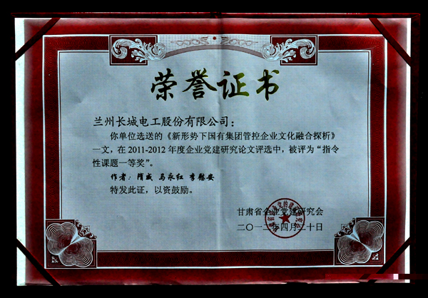 會(huì)議同期,甘肅省屬暨中央在甘企業(yè)創(chuàng)先爭(zhēng)優(yōu)活動(dòng)領(lǐng)導(dǎo)小組召開會(huì)議并下發(fā)《關(guān)于表彰省屬暨中央在甘企業(yè)創(chuàng)先爭(zhēng)優(yōu)理論研討優(yōu)秀論文的決定》(甘國資創(chuàng)組[2012]9),對(duì)創(chuàng)先爭(zhēng)優(yōu)理論研討優(yōu)秀論文進(jìn)行了表彰。長(zhǎng)城電工系統(tǒng)三篇論文受到表彰。