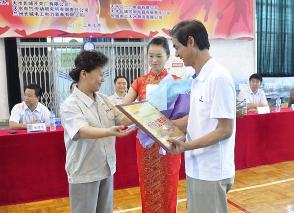 (長城電工副總經(jīng)理毛建光為獲獎代表隊頒獎)