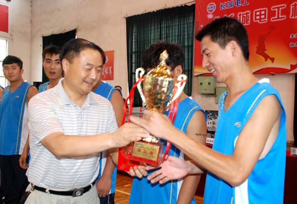(長城電工總經(jīng)理張希泰為獲獎代表隊頒獎)