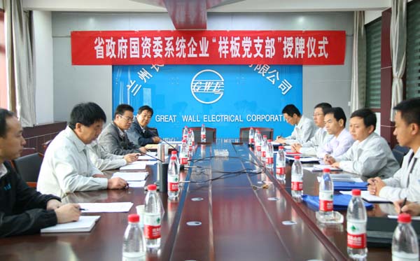 9月13日上午,省政府國(guó)資委黨委在長(zhǎng)城電工天電器集團(tuán)公司舉行省政府國(guó)資委系統(tǒng)企業(yè)“樣板黨支部”授牌儀式。長(zhǎng)城電工系統(tǒng)企業(yè)三個(gè)基層黨支部被授牌。長(zhǎng)城電工黨委委員、副總經(jīng)理毛建光主持授牌儀式。