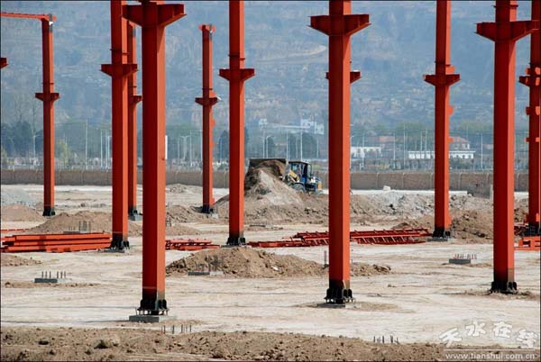 三月的渭河兩岸,楊柳吐綠、桃李含苞、生機盎然。記者來到天水經(jīng)濟技術開發(fā)區(qū)社棠工業(yè)園,一處占地470多畝,鋼架林立的新廠區(qū)初見雛形,這就是投資21億元,被省政府列為去年開工建設的20個重點項目之一的長城電工天水電工電器產(chǎn)業(yè)園。一副規(guī)劃宏偉、綠樹掩映的園區(qū)鳥瞰圖深深地吸引了記者,不遠的將來,這里的經(jīng)營規(guī)模可達到50億元,成為國內(nèi)領先、國際先進的循環(huán)經(jīng)濟和清潔能源示范園區(qū)。
