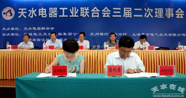 會(huì)上,市領(lǐng)導(dǎo)親自為天水天辰電器有限公司等12戶新入會(huì)的理事單位頒發(fā)了天水電器工業(yè)聯(lián)合會(huì)理事證書。蘭州銀行天水分行行長助理董麗麗、天水電器工業(yè)聯(lián)合會(huì)秘書長韋利民代表銀企雙方現(xiàn)場簽署了金融服務(wù)合作意向書。會(huì)議還創(chuàng)新了辦會(huì)模式,安排蘭州銀行天水分行、上海思方電氣技術(shù)有限公司、甘肅卓信達(dá)軟件工程有限公司、長城電工物流有限公司、天水力天軟件開發(fā)有限責(zé)任公司及天水經(jīng)濟(jì)技術(shù)開發(fā)區(qū)招商局等六家單位就金融服務(wù)項(xiàng)目、企業(yè)信息化建設(shè)、智能電網(wǎng)、電氣工程軟件應(yīng)用和天水社棠產(chǎn)業(yè)孵化園招商等內(nèi)容進(jìn)行了大會(huì)交流互動(dòng),收到了良好效果。