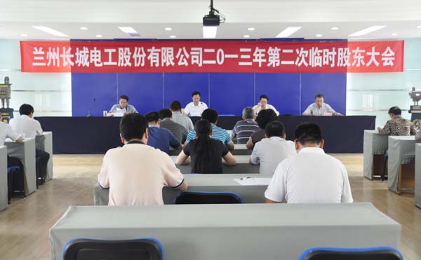 2013 年8月28日上午,由楊林董事長主持,蘭州長城電工股份有限公司召開了2013年第二次臨時股東大會,會議審議并通過了《關(guān)于修改<公司章程>的議案》、《關(guān)于以部分閑置募集資金進行現(xiàn)金管理的議案》、《關(guān)于以部分閑置募集資金暫時用于補充流動資金的議案》、《關(guān)于以募集資金置換自籌資金預先投入的議案》、《關(guān)于聘請2013年度公司財務審計機構(gòu)的議案》、《關(guān)于分拆對子公司天水長城果汁飲料有限公司提供擔保額度的議案》等議案。 |