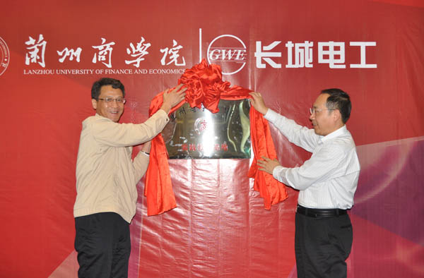 長城電工黨委副書記、紀(jì)委書記、工會主席隋威與蘭州商學(xué)院MBA教育中心主任胡凱共同為“蘭州商學(xué)院MBA實踐教學(xué)基地”揭牌。