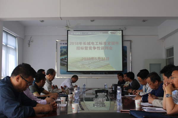 2018年5月31日,長城電工2018年度標準緊固件招標暨競爭性談判會在物流公司召開,長城電工集采配套中心隨機從集采專家?guī)斐槿〉?SPAN lang=EN-US>5位專家、邀請的4位物資使用公司代表、投標方代表及工作人員共計20余人 參加。