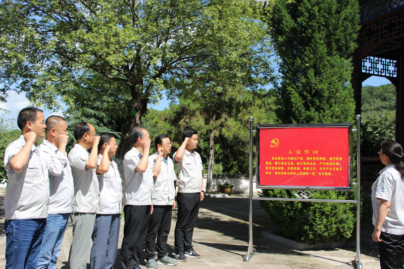 在紀(jì)念館陳列室門前,黨總支副書記文曉云同志宣讀了2019年優(yōu)秀共產(chǎn)黨員和優(yōu)秀黨務(wù)工作者表彰決定,黨總支書記、總經(jīng)理劉志濤同志給獲獎人員頒發(fā)了證書,管理黨支部書記韓婧同志帶領(lǐng)全體黨員重溫了入黨誓詞。